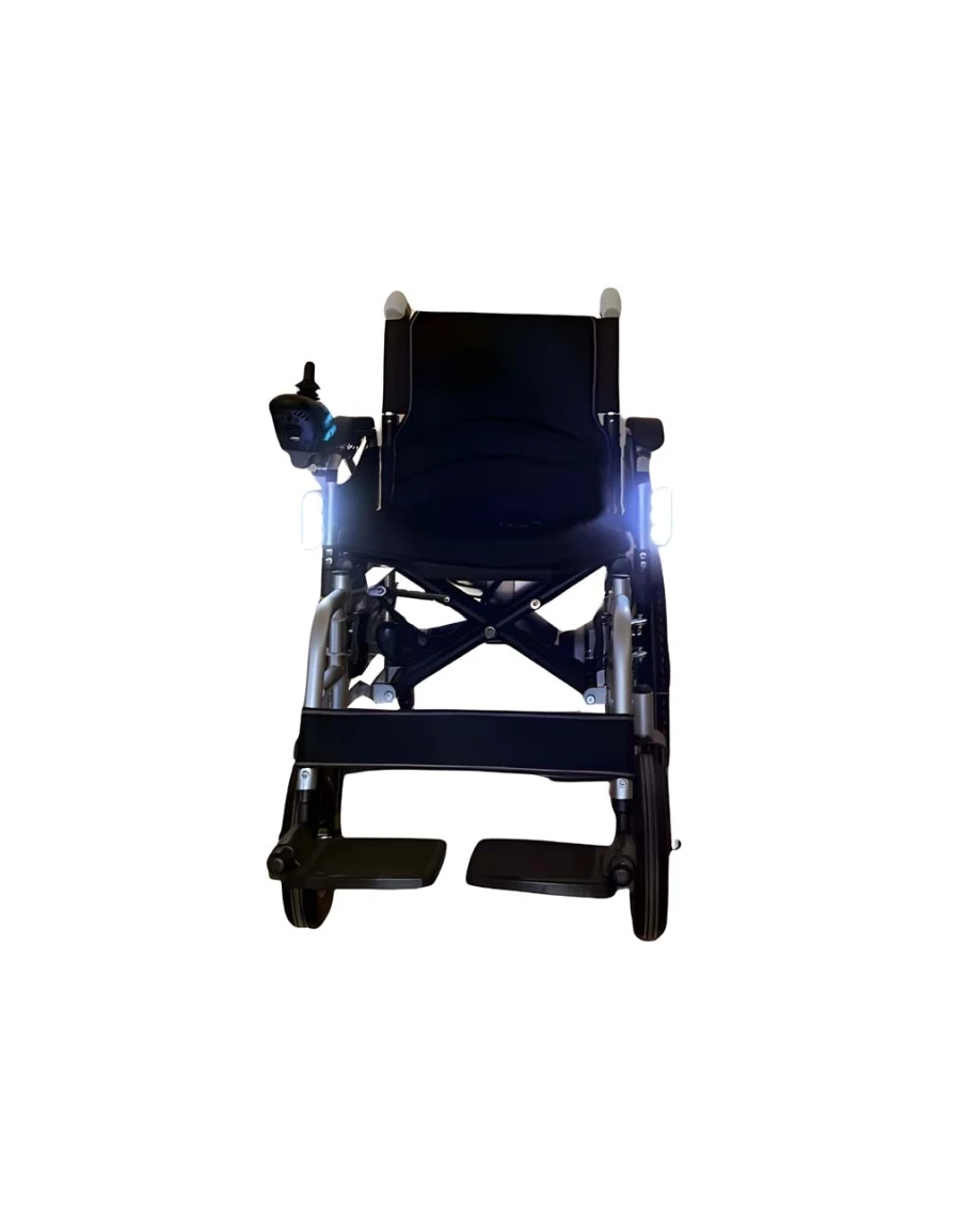 Katlanabilir, aydınlatma farı ve USB girişli, seyahat anında taşınabilir, akü portatif, istenildiği yerde şarj edilebilir. Ayrıca joystick'ten şarj olur, refakatçi ile manuel kullanılabilir. Kolçakları geriye doğru açılır ve dayama yerleri su almaz, sırtı kırılabilir, ayaklıkları yukarı aşağı ayarlanabilir ve yanlara açılabilir, ayrıca çıkarılabilir. Çift makaslı ve mukavemetli şaseye sahiptir. Engebeli yollarda kolay kullanım sağlar. Joystick ileri geri ayarlanabilir, yüksek performanslı kumanda mevcuttur. PG VSI tipli joystick 360° dönebilme kabiliyetine sahiptir, şarj göstergesi, hız ayarı, üç dilde konuşabilme özelliği ve (SOS) acil yardım butonu vardır. Ön tekerleklerin süspansiyonu mevcuttur. Motorlarda ve kumandada elektromanyetik sistemi vardır; sürüş modunu bıraktığımızda güvenli kontrol devresi aktif olur ve ileri geri hareket etmez. Ayrıca sağ ve solda acil mekanik fren bulunmaktadır. Geriye devrilmemesi için denge tekerlekleri mevcuttur. Akülerin şarj dolumu bittiğinde şarj cihazı otomatik kapanır. Emniyet kemeri mevcuttur.